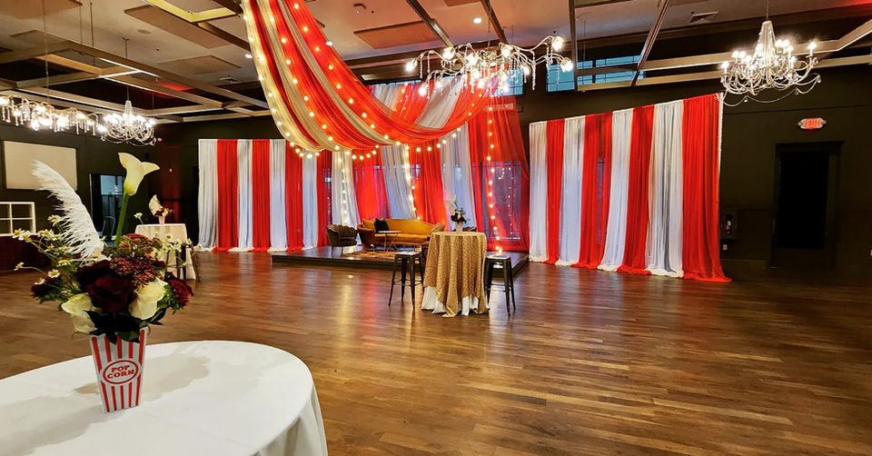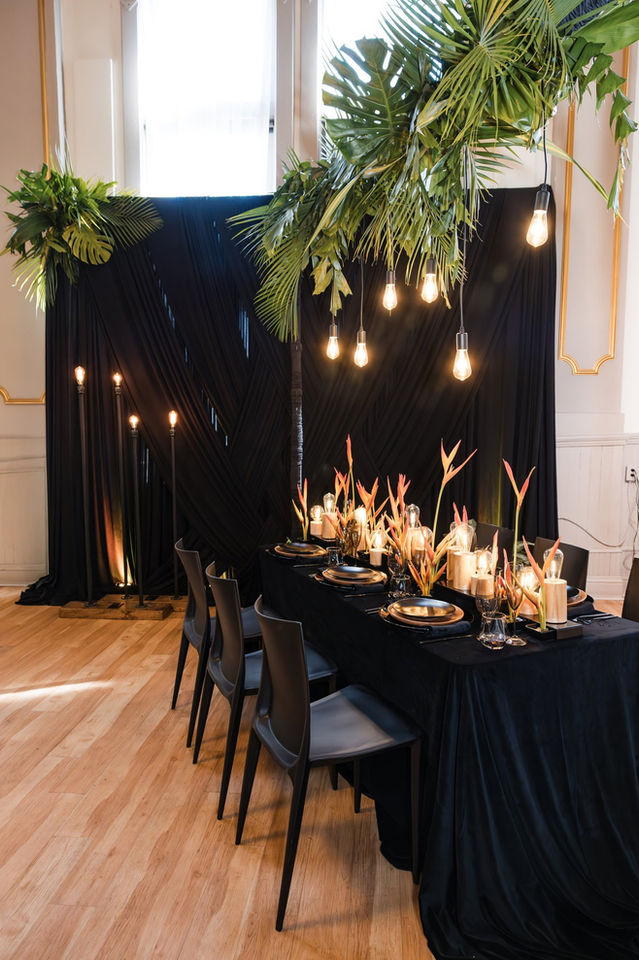 Ceiling Draping: Single swags, radial center, or full coverage. Add twinkle for depth.